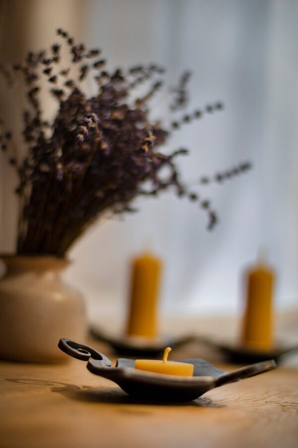 Kaltinė metalinė žvakidė neabejotinai suteiks namams jaukumo ir šilumos. Uždegta žvakė sukuria gražius šviesos ir šešėlių raštus, apgaubdama erdvę malonia, jaukia atmosfera. Kelių žvakių kompozicija ant stalo ar lentynos sukuria itin gražų, dinamišką vaizdą.