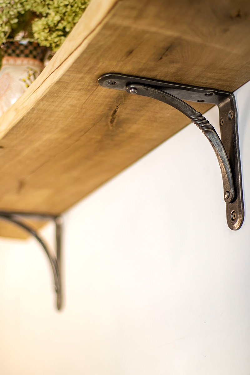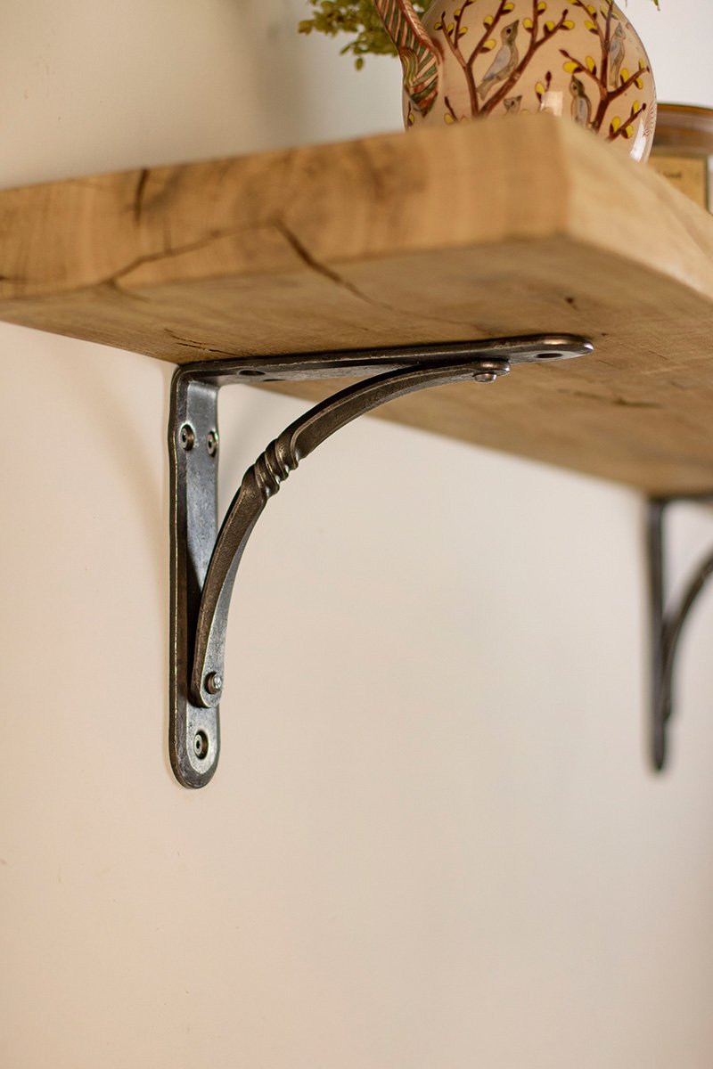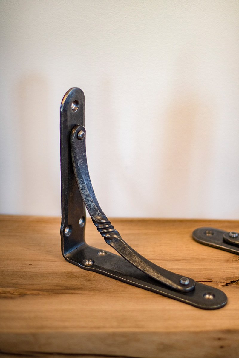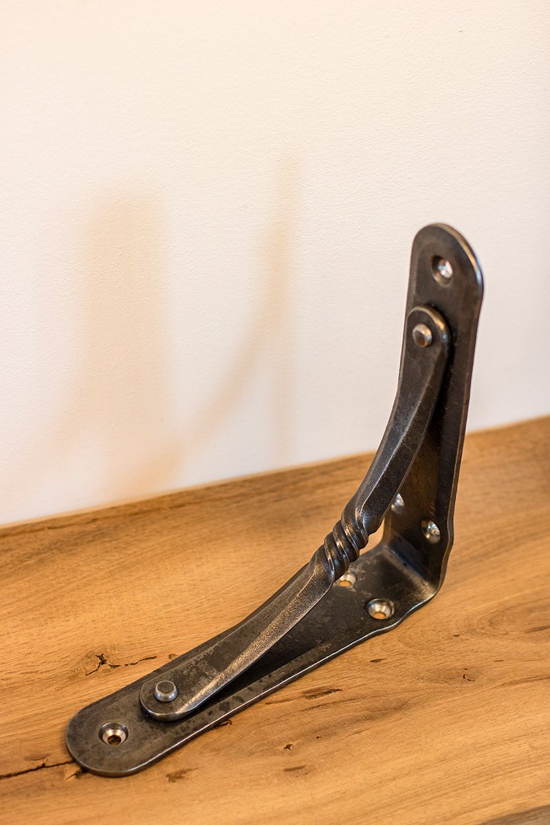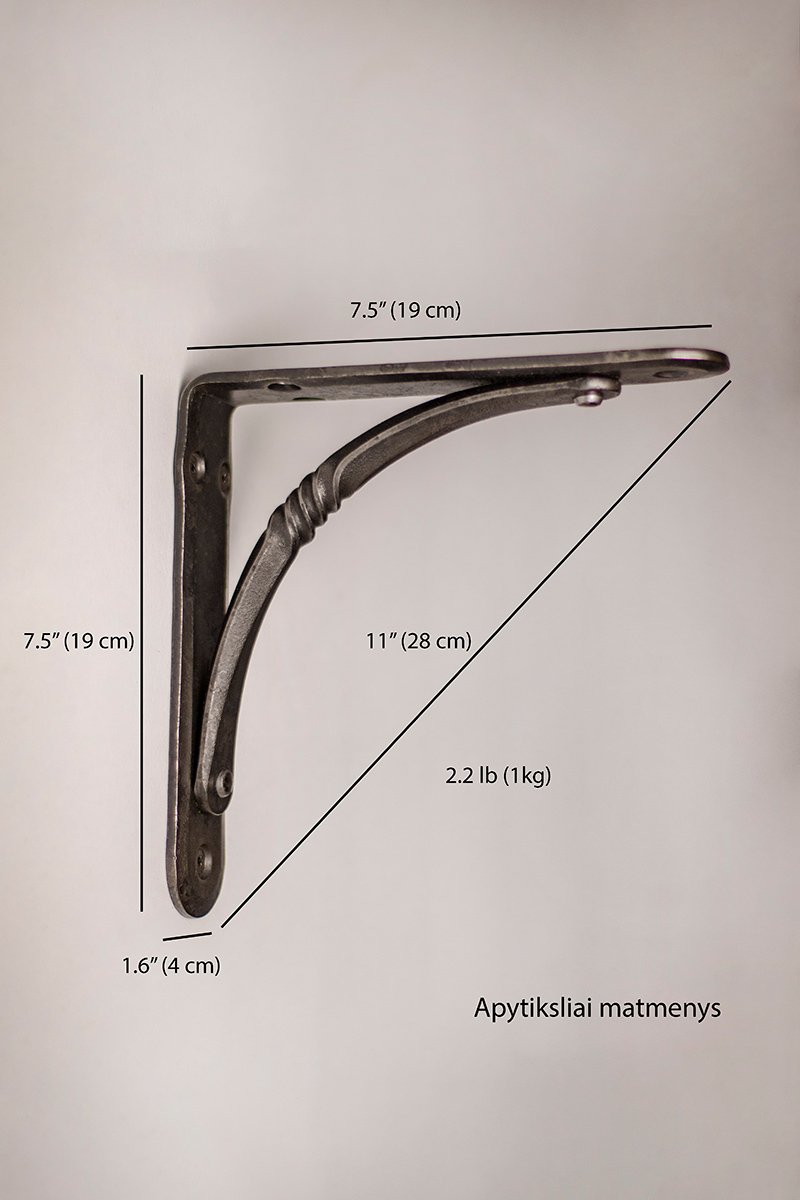 Tvirti, kaltiniai lentynų laikikliai, kurių kniedėmis sujungtos detalėssuteikia papildomo tvirtumo ir išskirtinio charakterio. Puikiai tiks virtuvėje, svetainėje, darbo kambaryje ar vonioje. Lentynų laikikliai dera tiek kaimiško, tiek modernaus interjero erdvėse ir yra subtilus akcentas.