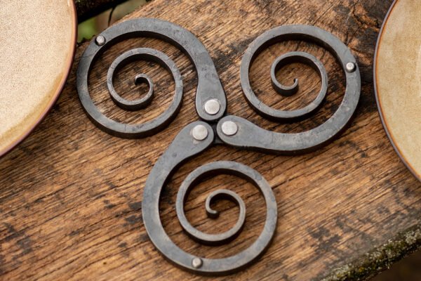 Šį padėkliuką sukūriau įkvėptas gamtoje sutinkamų spiralinių formų. Tik vėliau pastebėjau, kad jo forma primena senovinį Triskelion simbolį, aptinkamą keltų mene ir kultūroje. Šis simbolis siejamas su judėjimu, augimu ir gyvenimo ciklais, todėl padėkliukas įgauna dar gilesnę prasmę.