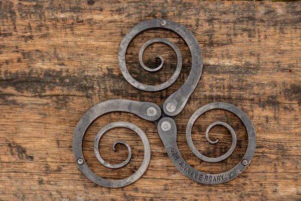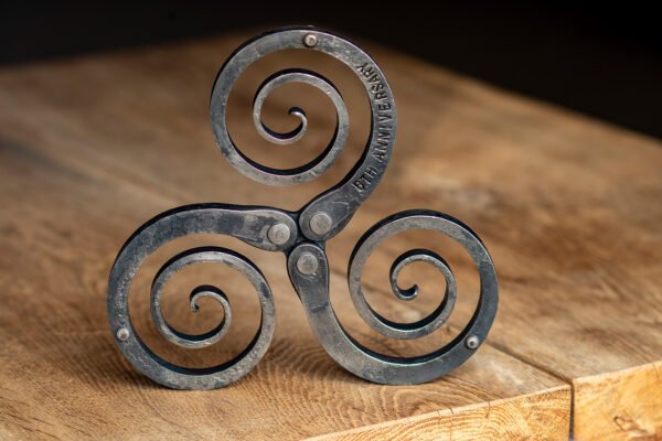 Personalizuotas padėkliukas – ne tik funkcionali detalė, bet ir unikali, šilumą skleidžianti dovana artimiesiems. Jis sukurtas naudojant tradicines kalvystės technikas – visos dalys tvirtai sujungtos kniedėmis.