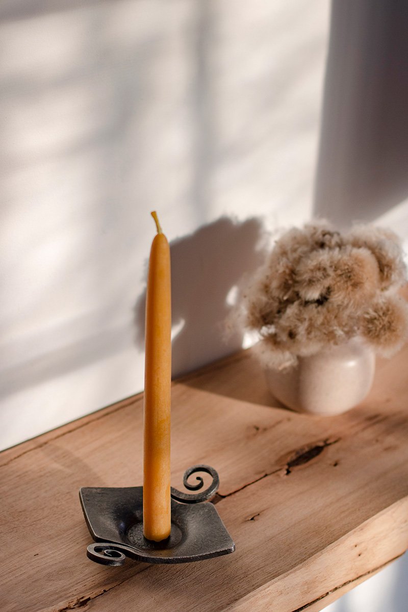 Kaltinė metalinė žvakidė suteikia namams jaukumo ir išskirtinio charakterio. Dėl savo minimalistinės formos ji lengvai dera bet kurioje erdvėje, o uždegus žvakę kuria malonią ir viliojančią atmosferą.